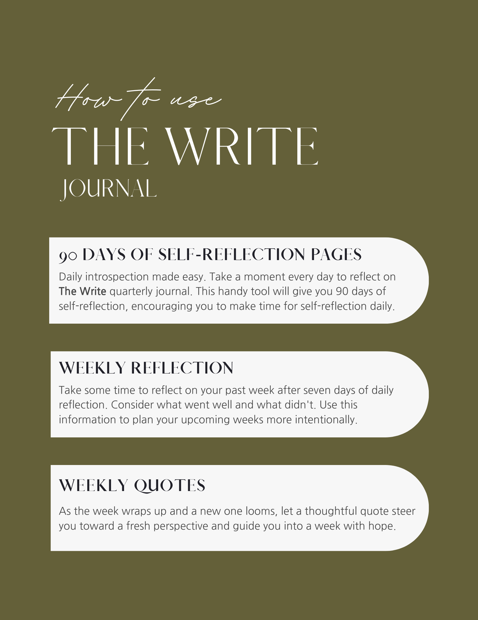 Whether you're aiming to write daily, weekly, monthly, or when you feel the need to, The Write Journal is the best partner: